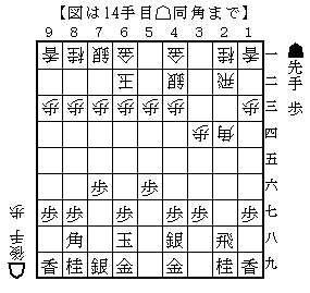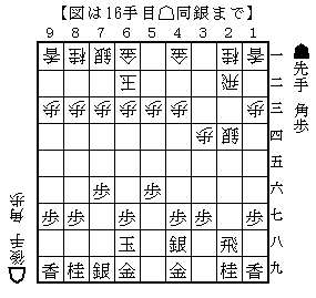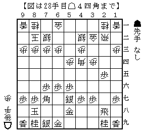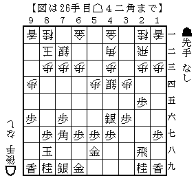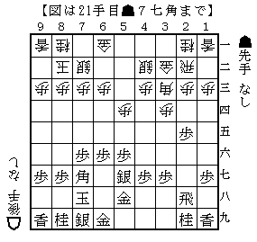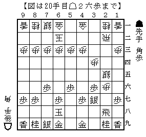 初手から☗26歩☖34歩☗25歩☖33角☗76歩☖22飛☗48銀☖42銀